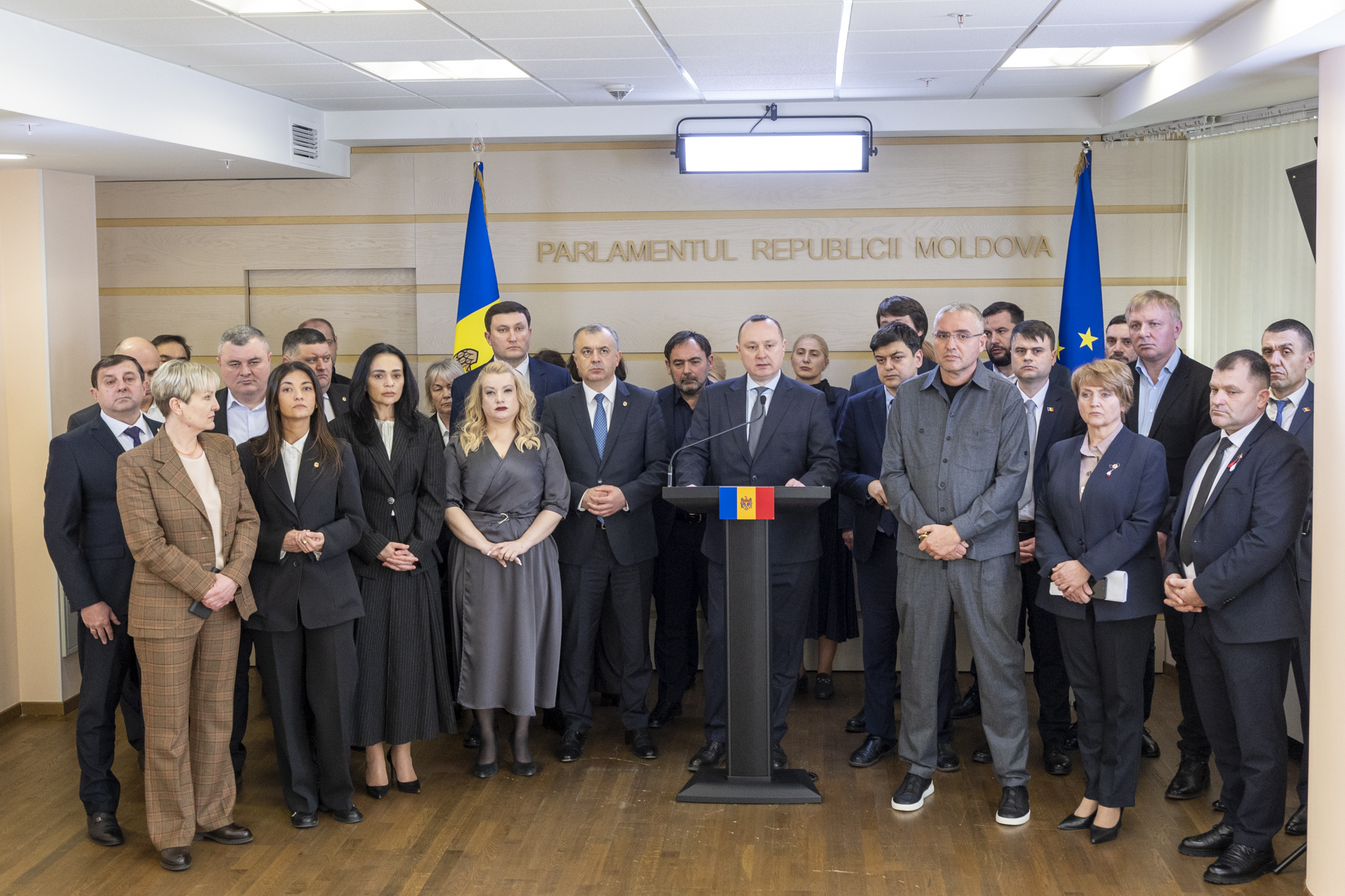 „Stimată doamnă ambasador a misiunii UE în RM, domnule ambasador al Consiliului Europei, noi, reprezentanții a cinci formațiuni parlamentare, cerem întrevederi cu dvs., ca părți direct implicate în realizarea reformei justiției, pentru a discuta cu societatea și cu cei aleși de popor și a identifica soluții de normalizare. Cerem implicarea dvs. activă, cum a fost pe vremuri, când Consiliul Europei era foarte activ în Republica Moldova.”